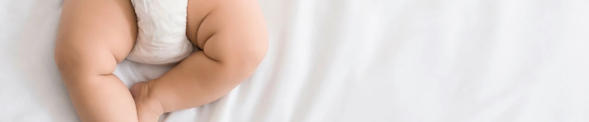 Legen Sie Ihr Baby mit dem Rücken auf den Wickeltisch und heben Sie den Po leicht an, indem Sie mit der rechten Hand den linken Oberschenkel des Babys umfassen und im Hüftgelenk beugen, während das andere Bein auf Ihrem Unterarm liegt. Alternativ umfassen Sie mit der linken Hand den rechten Oberschenkel. So können Sie den Po einfach und vorsichtig anheben, mit der alten Windel abwischen und diese entfernen, ohne die Hüfte zu belasten. Wischen Sie den Po danach mit einem feuchten Waschlappen oder einem Feuchttuch ab. Bei Mädchen immer von vorne nach hinten abwischen. Warten Sie, bis der Babypo ganz trocken ist, bevor Sie Ihrem Kind eine neue Windel anziehen.