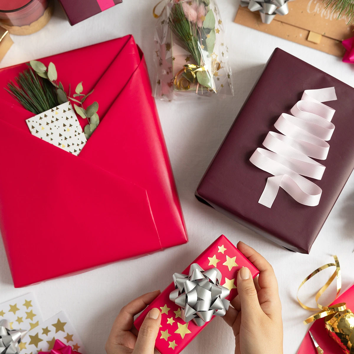 Um Geschenkpapier kunstvoll zu falten brauchst du: