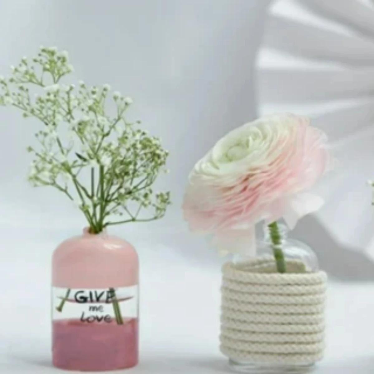 - Die kleinen individuell gestalteten Vasen danach noch mit Wasser und hübschen Blümchen befüllen und fertig ist die hübsche Deko! Wir wünschen viel Spaß beim Ausprobieren und Nachmachen!