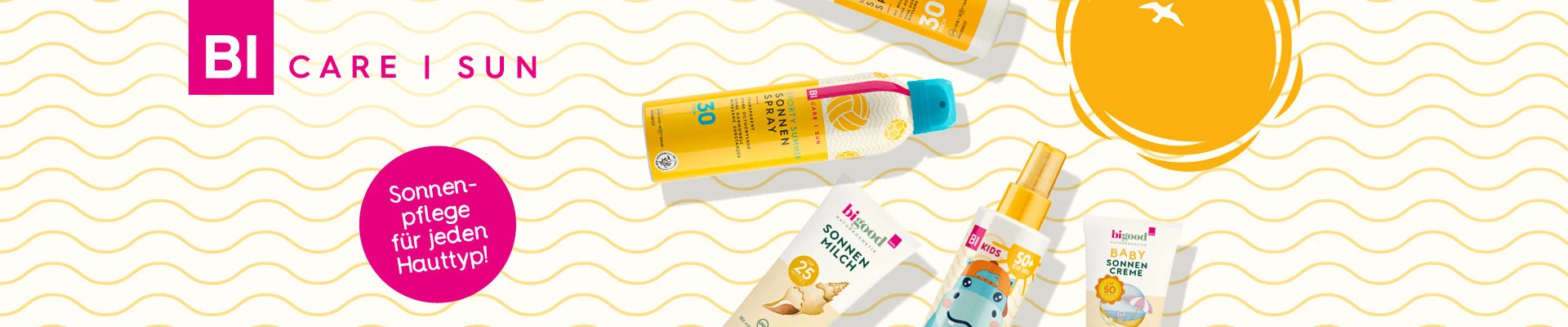 Da Kinderhaut sehr empfindlich ist, benötigt sie eine besonders zuverlässige Sonnenpflege. Damit dem Austoben an der frischen Luft aber nichts im Wege steht, beinhaltet das BIPA Sortiment zuverlässigen Schutz speziell für die Kleinen. Die BI KIDS Sonnencreme ultra sensitiv 50+ und das BI KIDS Sonnenspray ultra sensitiv 50+ schützen optimal vor Sonnenstrahlen und können einem schmerzhaften Sonnenbrand vorbeugen. Die bi good Kinder Sonnencreme LSF 50 ist eine vegane, naturzertifizierte Option, mit höchstem Schutz für Kinderhaut. Um die aller Kleinsten kümmert sich die bi good Baby Sonnencreme sensitiv LSF 50, mit durchweg natürlichen Inhaltsstoffen, dem Verzicht auf synthetische Duftstoffe und einem rein mineralischen Filter, sind die Sonnenpflegen von bi good besonders sanft zur Haut und schützen effektiv vor Sonnenstrahlen.