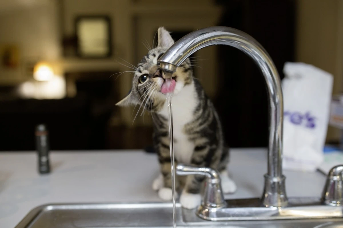 Auch ein Wasserhahn, den man nur ein klein wenig aufdreht, sodass er tropft, ist für viele Katzen ein magischer Anziehungsspunkt. Denn auch in der Natur bevorzugen Katzen fließende Gewässer, wie Flüsse und keine stehenden Wasserstellen. Grund dafür: Die Fellnasen gehen instinktiv davon aus, dass stehendes Wasser mit Keimen verseucht sein könnte, fließendes Wasser aber sicher und sauber ist.